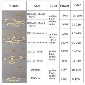 - Sculptural Brilliance: Crafted with precision, this chandelier features a circular ring design. The interplay of acrylic, aluminum alloy, and metal creates a harmonious blend of modern aesthetics and timeless elegance.
