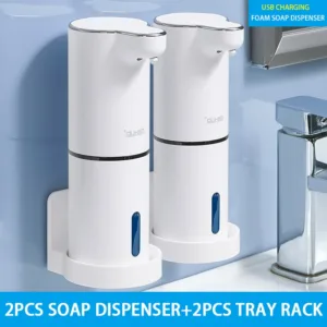- Automatic Soap Dispenser Wall Mounted Set : The wall mounted soap dispenser has a tray adhesive that can be wall mounted or placed on the table. Small size (7cm x 9.8cm x 21.9cm, 2.75inch*3.86inch*8.62inch) and space-saving . With 300ml(10.58oz) Large Capacity & Tray & Wall Mountable. Foaming soap dispenser have Enough capacity, no need to change hand sanitizer frequently. Transparent water level gauge design, easy to confirm the remaining amount of liquid.